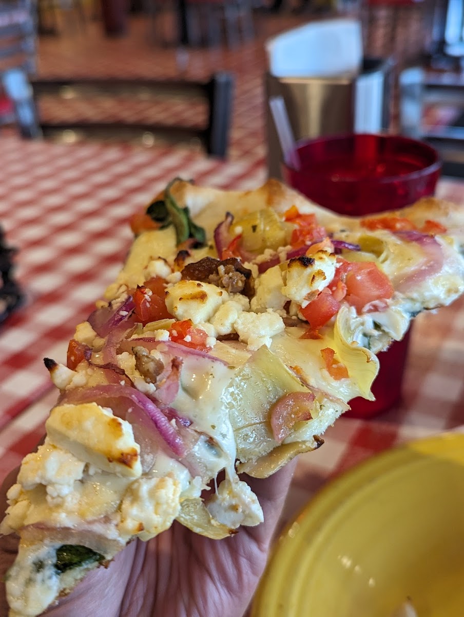 Came here for lunch. Was greeted as I entered the restaurant. It was easy to find a table. Ordered a couple slices for the kids and personal pizzas for me and wife. Food arrived fairly quickly. I got the buffalo chicken pizza and it was probably the best I have had in a while. Kids liked the slices as well. Service was friendly and fast. Overall was a good experience. Would recommend coming here if you are craving some good pizza.