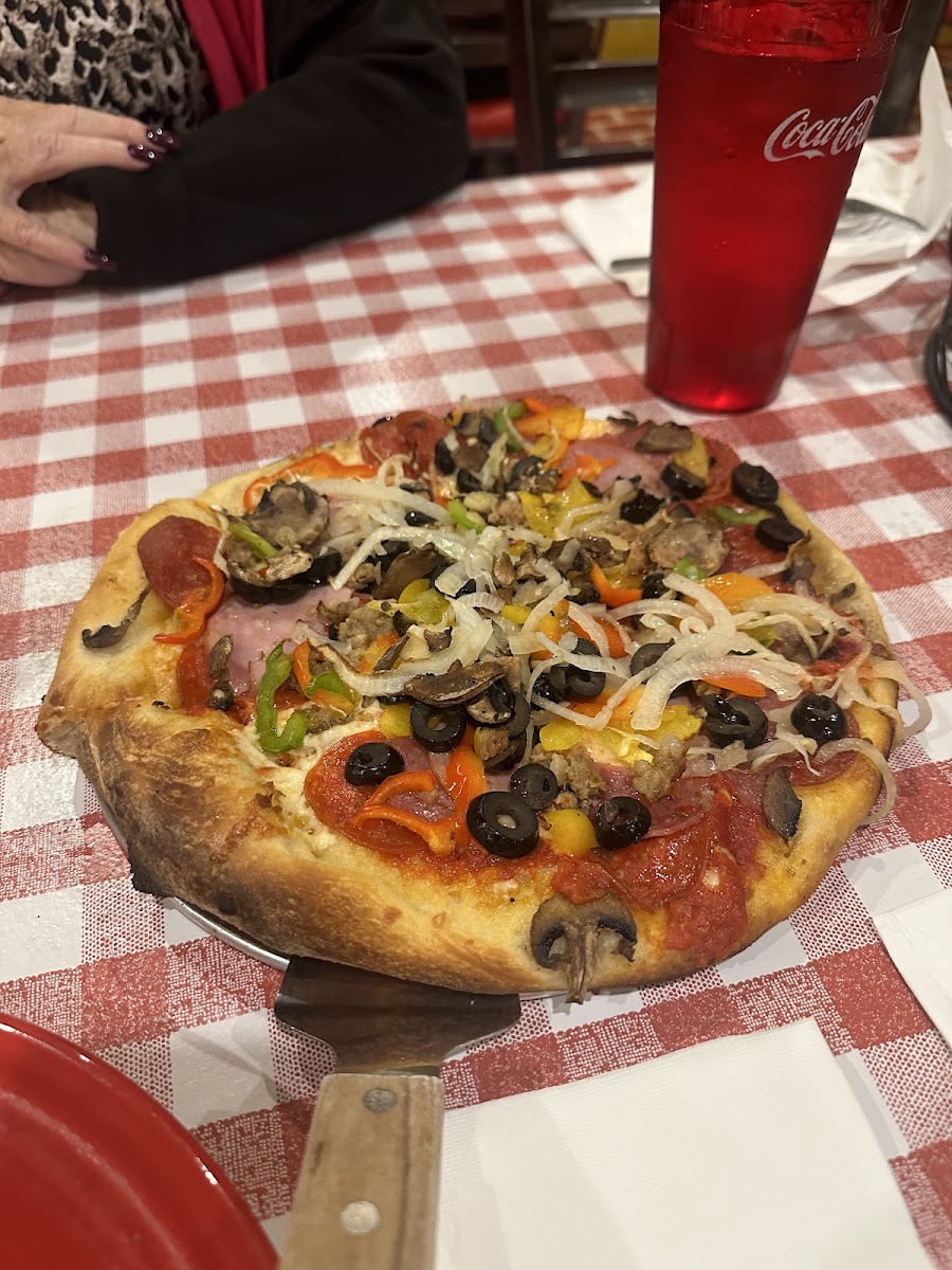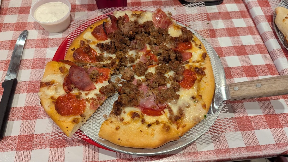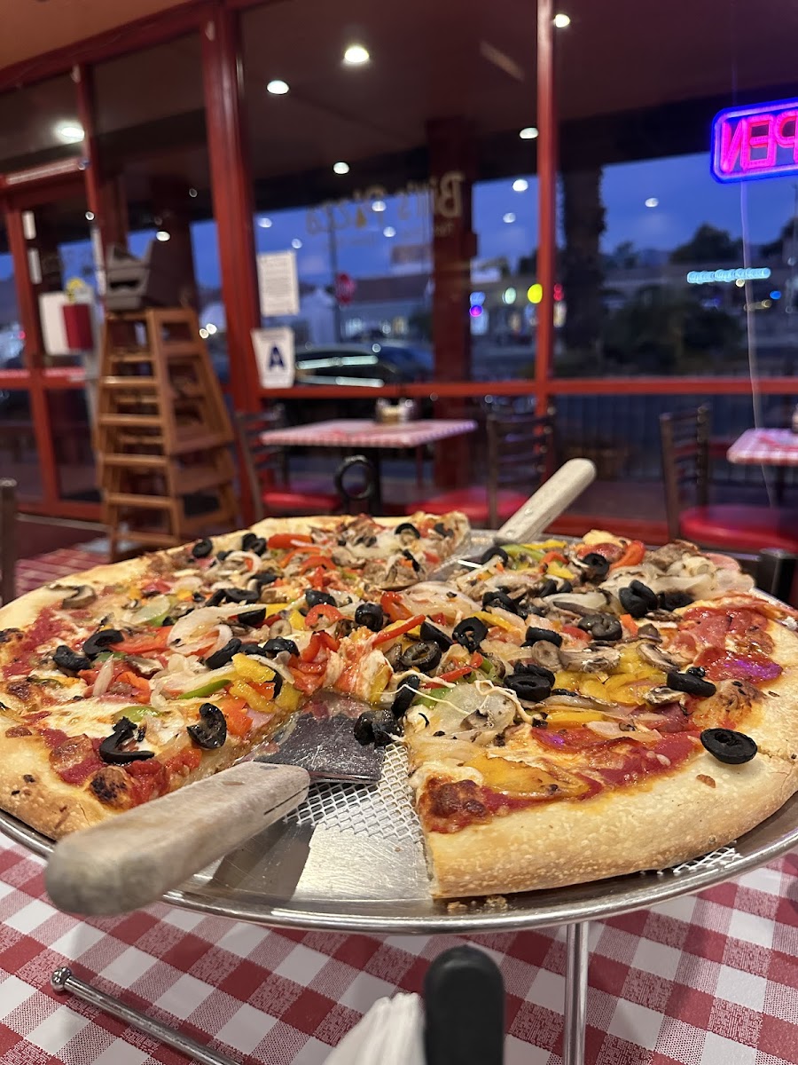 I'm so happy to have another Bill's pizza location i Palm Deserf. Much larger & more accessible. The pizza was delicious. Just to our liking. We had the 10" sweet Italian sausage, pepperoni & white onion. Enough for 2. Small eaters. Just always wonder why there is only a 10" or 18" as the o nly size choice. We are from Wisconsin & and have always enjoyed Boll's when visiting the desert.